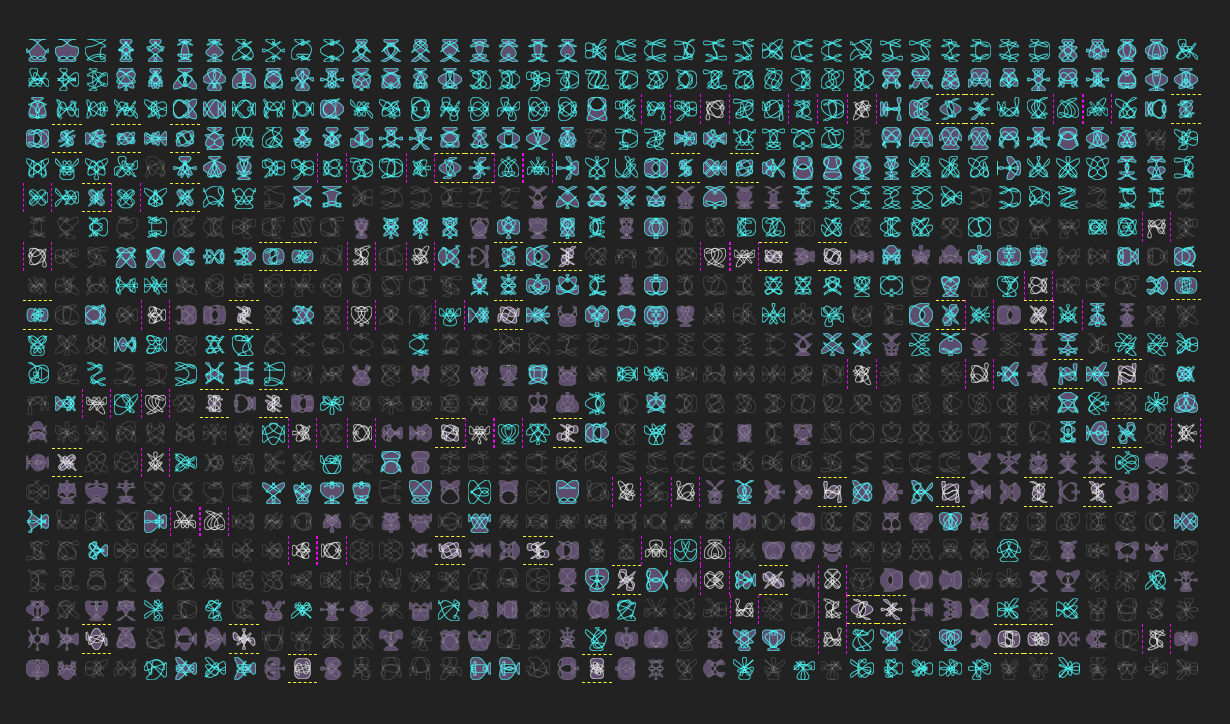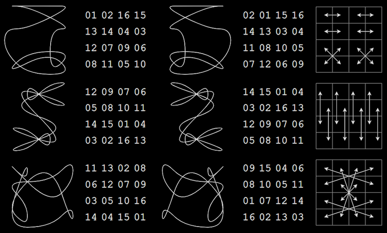 # Live demo… - [Order 4 styles](https://squares.cubelife.org/?order=4&amount=unique&style=numbers&size=11&gap=26&overlap=false&overlapAmount=overlap200&background=%23222222&stroke=%23FFFFFF&strokeWidth=2&salpha=255&fill=%23666666&falpha=0&animation=off&speed=50&dayMode=false) - [Order 12 pattern varieties (classes)](https://squares.cubelife.org/?order=12&amount=unique&style=straight&size=11&gap=26&overlap=false&overlapAmount=overlap200&background=%23222222&stroke=%23b8f9e9&strokeWidth=2&salpha=255&fill=%23666666&falpha=0&animation=off&speed=50&dayMode=false), see also [order 8](https://squares.cubelife.org/?order=8&amount=unique&style=quadvertex&size=11&gap=16&overlap=false&overlapAmount=overlap200&background=%23222222&stroke=%23f8f9b9&strokeWidth=2&salpha=255&fill=%2394bf5f&falpha=15&animation=off&speed=50&dayMode=false) - [Order 4 seamless grid animation quadline](https://squares.cubelife.org/?order=4&amount=unique&style=quadline&size=4&gap=0&overlap=false&overlapAmount=overlap200&background=%23222222&stroke=%23f8c8f9&strokeWidth=4&salpha=255&fill=%23666666&falpha=0&animation=async&speed=50&dayMode=false), or [order 5 straight](https://squares.cubelife.org/?order=5&amount=unique&style=straight&size=6&gap=0&overlap=false&overlapAmount=overlap200&background=%23222222&stroke=%23bcb8ff&strokeWidth=2&salpha=255&fill=%23666666&falpha=0&animation=async&speed=50&dayMode=false), [order 5 arc](https://squares.cubelife.org/?order=5&amount=unique&style=arc&size=6&gap=5&overlap=false&overlapAmount=overlap200&background=%23222222&stroke=%23b8faff&strokeWidth=2&salpha=255&fill=%23666666&falpha=0&animation=async&speed=50&dayMode=false) - [Order 6 overlap animation](https://squares.cubelife.org/?order=6&amount=unique&style=quadvertex&size=7&gap=0&overlap=true&overlapAmount=overlap200&background=%23222222&stroke=%23fbf9d5&strokeWidth=1&salpha=45&fill=%239dd7be&falpha=5&animation=sync&speed=100&dayMode=false), or [order 10 arc](https://squares.cubelife.org/?order=10&amount=unique&style=arc&size=10&gap=15&overlap=true&overlapAmount=overlap200&background=%2337015b&stroke=%23ffef0a&strokeWidth=8&salpha=55&fill=%23ff9500&falpha=40&animation=sync&speed=100&dayMode=false)
